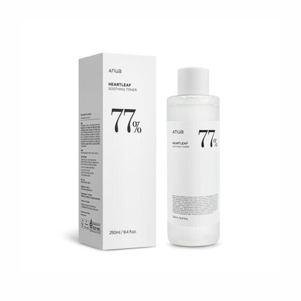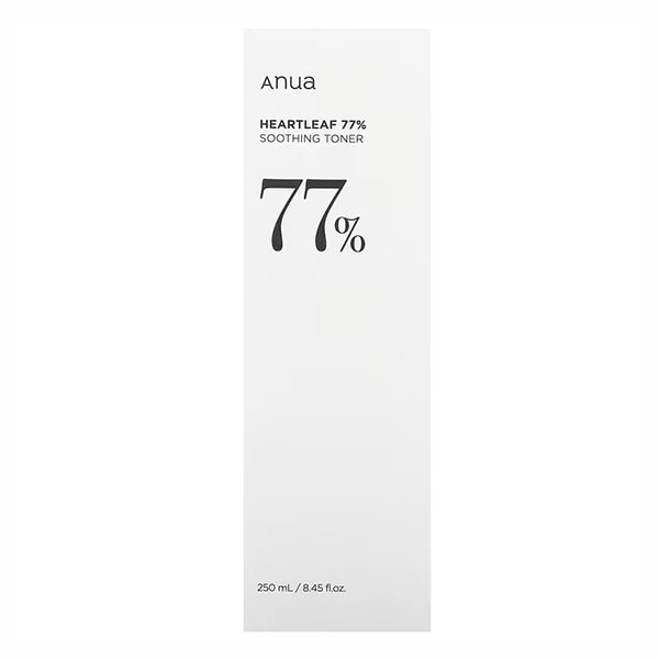 تونر تسکین دهنده 77% ANUA Heartleaf یک تونر محبوب و قدرتمند است که به دلیل خواص مرطوب کنندگی، ملایم بودن و تسکین دهنده بودن آن حتی برای پوست های حساس و مستعد آکنه شناخته شده است.