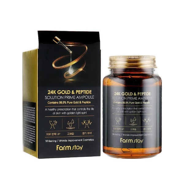 ژل آبرسان طلا و پپتاید برند فارم استی دارای پپتاید میباشد که این ماده با نفوذ به عمیق ترین لایه پوست، تولید الاستین و کلاژن را تحریک کرده، خاصیت ارتجاعی پوست رو افزایش میده و به عنوان یک لیفت کننده پوست به شمار میره.